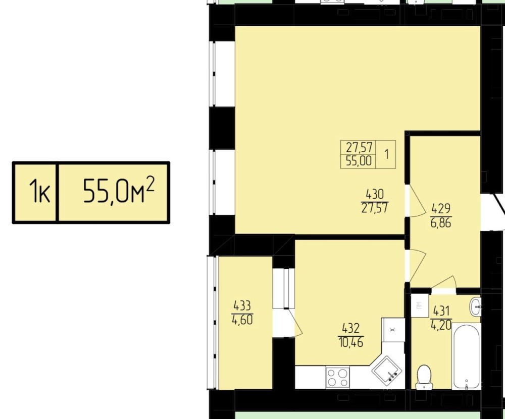 • Общая площадь 55 м2