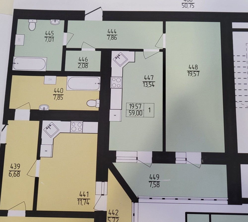 • Общая площадь 59 м2