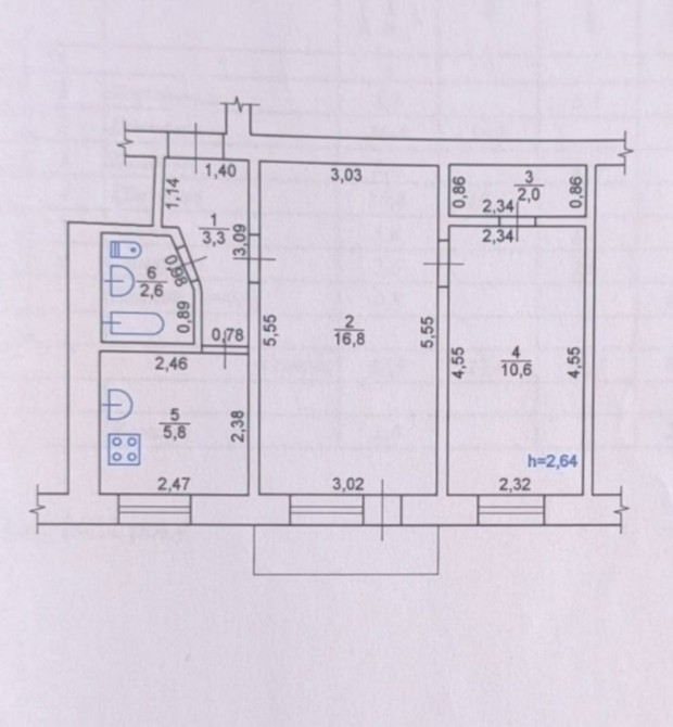 Загальна площа 41,9 м2, житлова - 27,4 м2, кухня - 5,8м2.