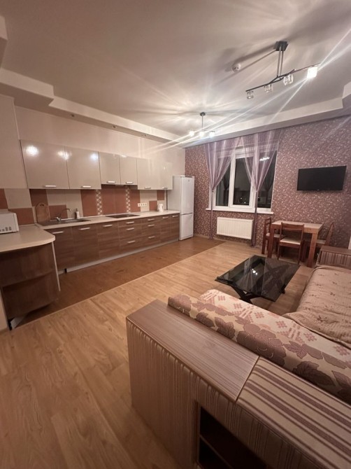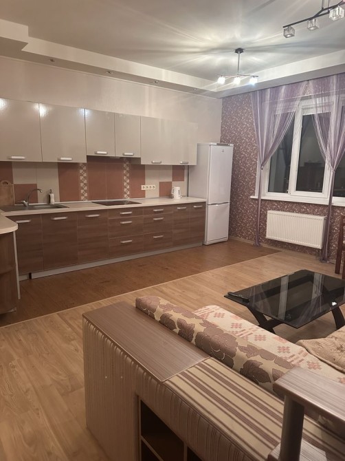 Формат квартиры: кухня-гостиная и спальня,с двумя балконами и большой гардеробной.Квартира укомплектована всей необходимой мебелью и техникой для вашего проживания.
