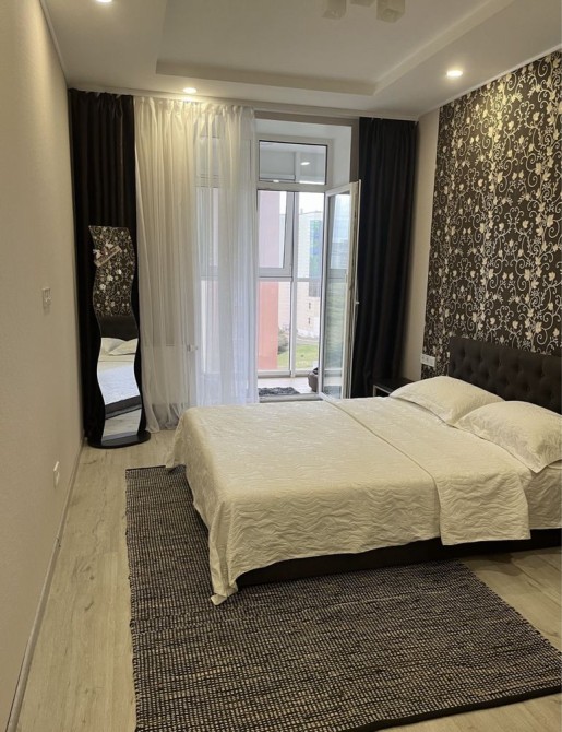 Код: 69. ПОМЕСЯЧНО АРЕНДА АКТУАЛЬНА В ПЕРИОД С 01.09 ДО 30.05 (в летний сезон сдается посуточно от 2-х суток, раннее бронирование от 5-и суток и более). Просторные апартаменты с двумя спальнями в Ж/К «Аркадийский дворец», ул. Аркадийское плато, 5/3, 5/12 эт. дома, общая площадь 120 кв. м. (с учетом террасы). Евроремонт, две отдельные спальни, вторая спальня без окон (установлена имитация окон), студия-кухня (24 кв. м.) с мягкой мебелью, диван раскладной. На кухне есть духовка и посуда. Выход на большую террасу с летней мебелью и шикарным видом на море. В санузле - ванна. Закрытая, охраняемая территория, подземный паркинг (за отдельную оплату), комплекс находится прямо над пляжем «Аркадия» в 150-и метрах от моря. Самый популярный курортный район и центр развлечений Одессы, район пляжей, ночных клубов, аттракционов, кафе и ресторанов. Аренда от 1-го месяца и более. Стоимость может варьироваться в зависимости от срока аренды. Перед просмотром уточните наличие и детали по VIBER, WHATSAPP или TELEGRAM, указав «КОД» из объявления. КОМИССИЯ ЗА УСЛУГИ РИЭЛТОРА - 50% от месячной аренды (разовая оплата при оформлении договора).