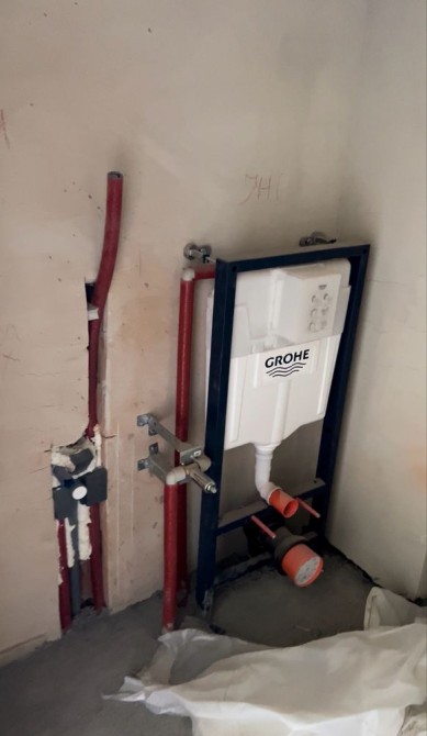 ◾️ Зроблена сантехніка та каналізація - у ванній кімнаті розведена сантехніка на ванну , умивальник , пральну машину , сушарку для рушника , гігієнічний душ та встановлена інсталяція