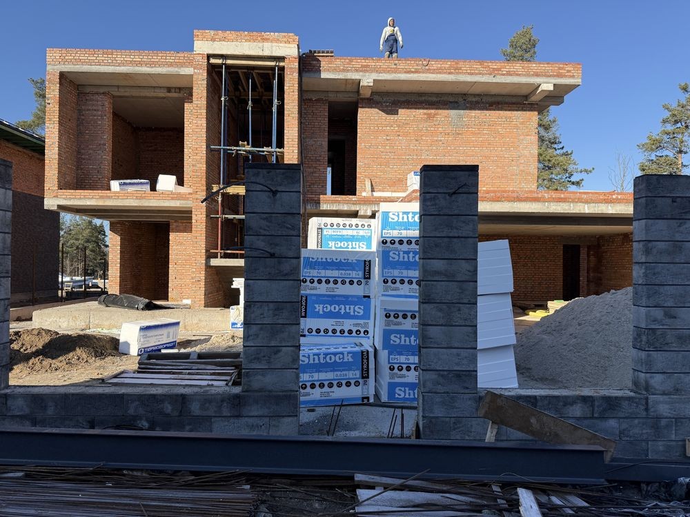 Броварской р.н.с.Рожны.Дом 2020г.Площадь жилая 210м2.Общая 300.Стены керамоблок.залиты межэтажные монолитные участок 36сот.Электричество15кВт.Интернет.Рядом лес.Маркет.базар.автобусная остановка.До города 20км
