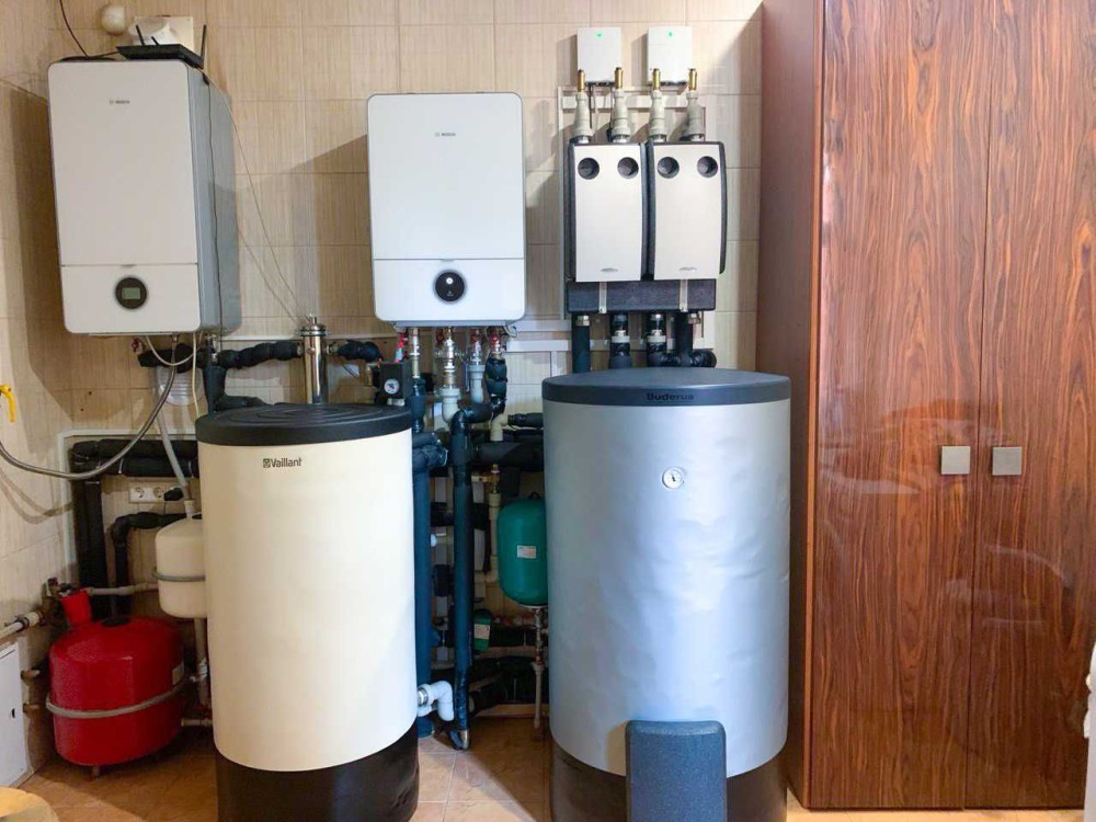 Опалення: німецька система BOSCH і Vaillant (тепловий насос), газовий котел, твердопаливний камін, тепла підлога