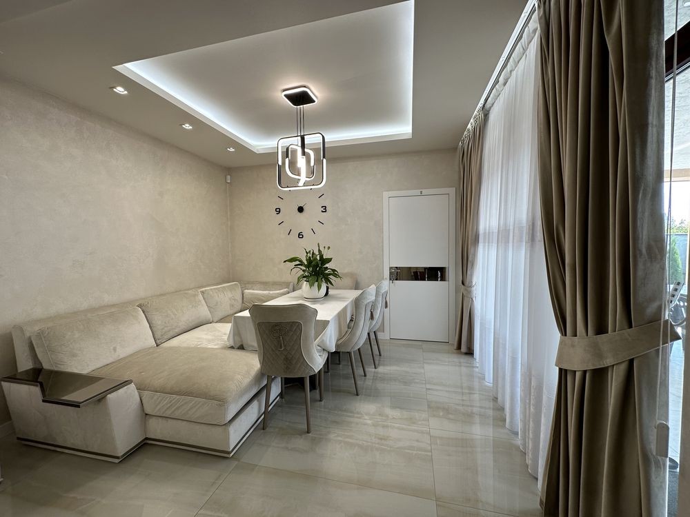 Дизайнерський ремонт, продуманий до дрібниць. Зручне планування: 3 окремі спальні, з гардеробними. 2 сан вузли. Котельня. Прачечна. Кабінет. Вітальня з діючим каміном та окремо столовою зоною, з виходом на терасу.