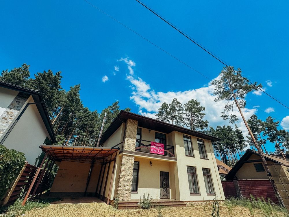 Якісний котедж, розташований у самому серці Лісової Бучі. Престижне оточення, асфальтована дорога, сосновий ліс. Сусіди – лише нові статусні будинки. Поруч із колишнім рестораном Toscana Grill.