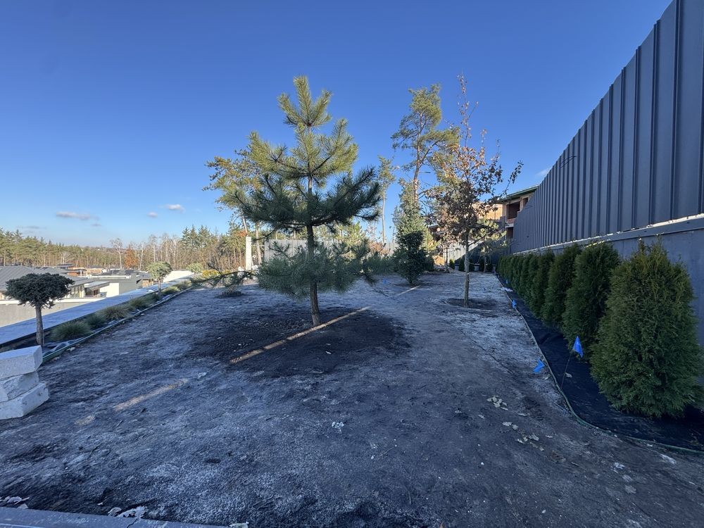 З готовим ландшафтним дизайном, газон, автополив, різного виду декоративні насадження