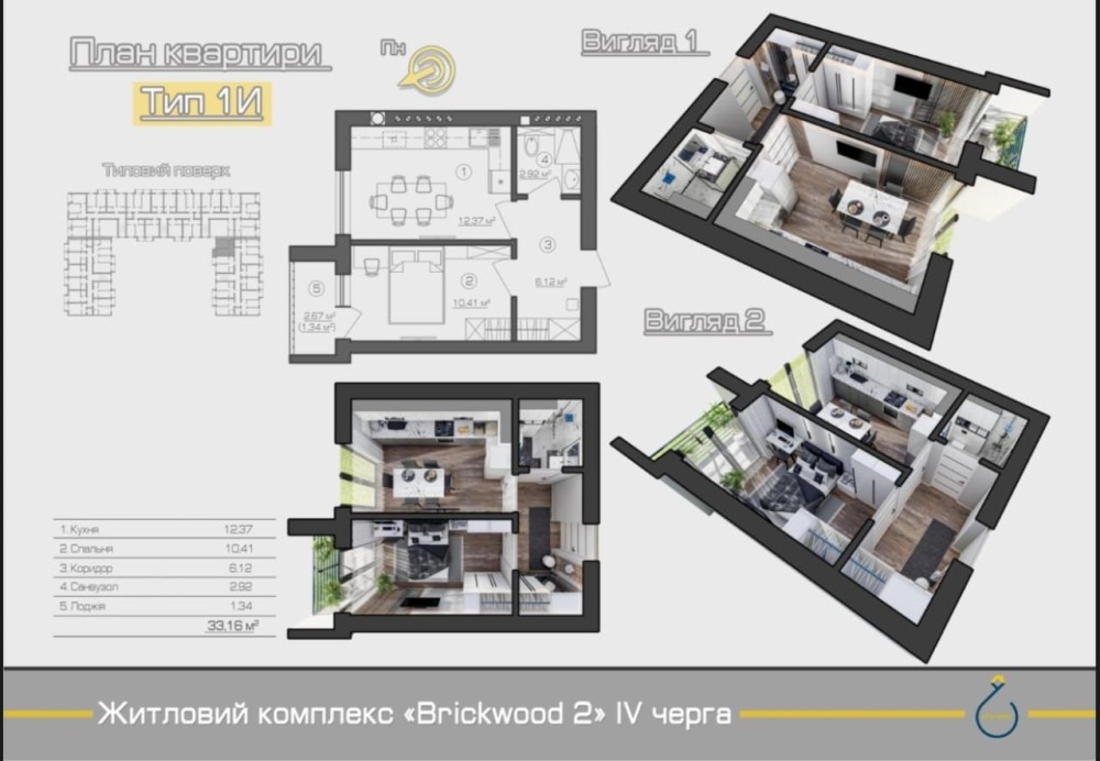 Продається світла та зручна квартира площею 33 м² у сучасному житловому комплексі.