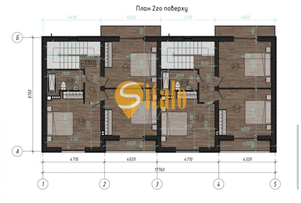 Другий поверх: три кімнати, санвузол і три балкони з кожної кімнати.