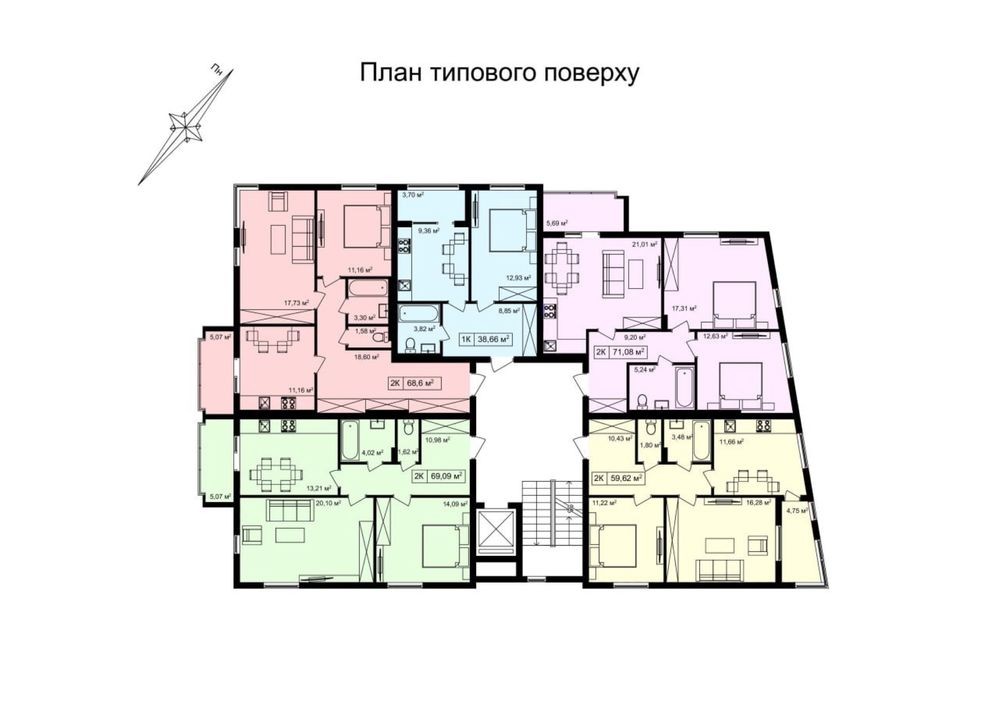 Площа від 60 до 115 м²