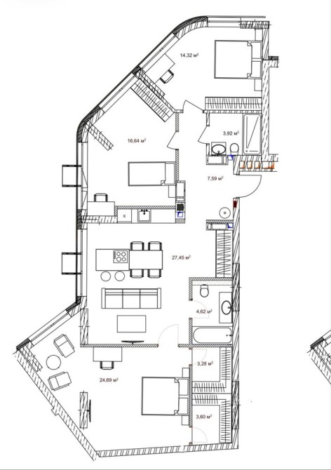 • Трехкомнатная