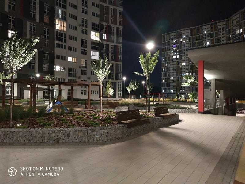 Закрита територія комплексу з цілодобовою охороною, відеоспостереженням, огороджена парканом, обладнана 4-ма КПП, що охороняються, діє система магнітних перепусток. На території комплексу з ландшафтним дизайном розмістилися дитячі майданчики, футбольний, волейбольний майданчик, зона Здоров'я з тренажерами просто неба, закрита лаунж - зона біля Дніпра з видом на Печерську Лавру, підземні паркінги, магазини, велопарковка, салони краси, кавярні, ресторани, нова пошта.
