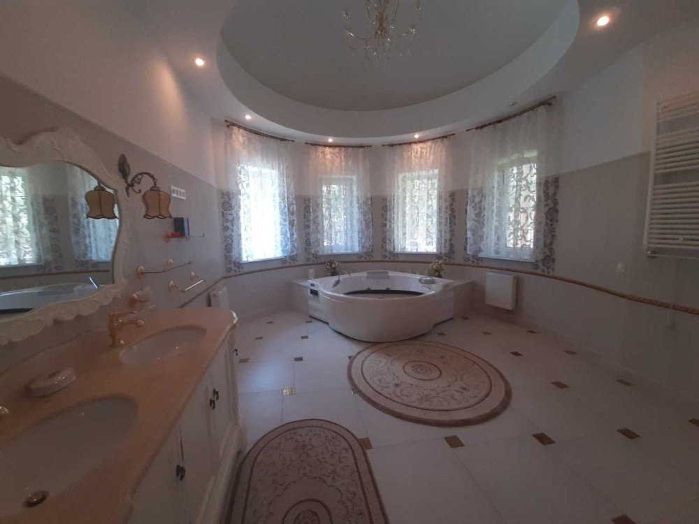 Дом оснащен всей , новой, мебелью и техникой от мировых производителей. Двери и лестница с натурального дерева, скважина 100 м, дорогая система очистки и фильтрации воды, подогрев полов, кондиционеры, посудомойка.