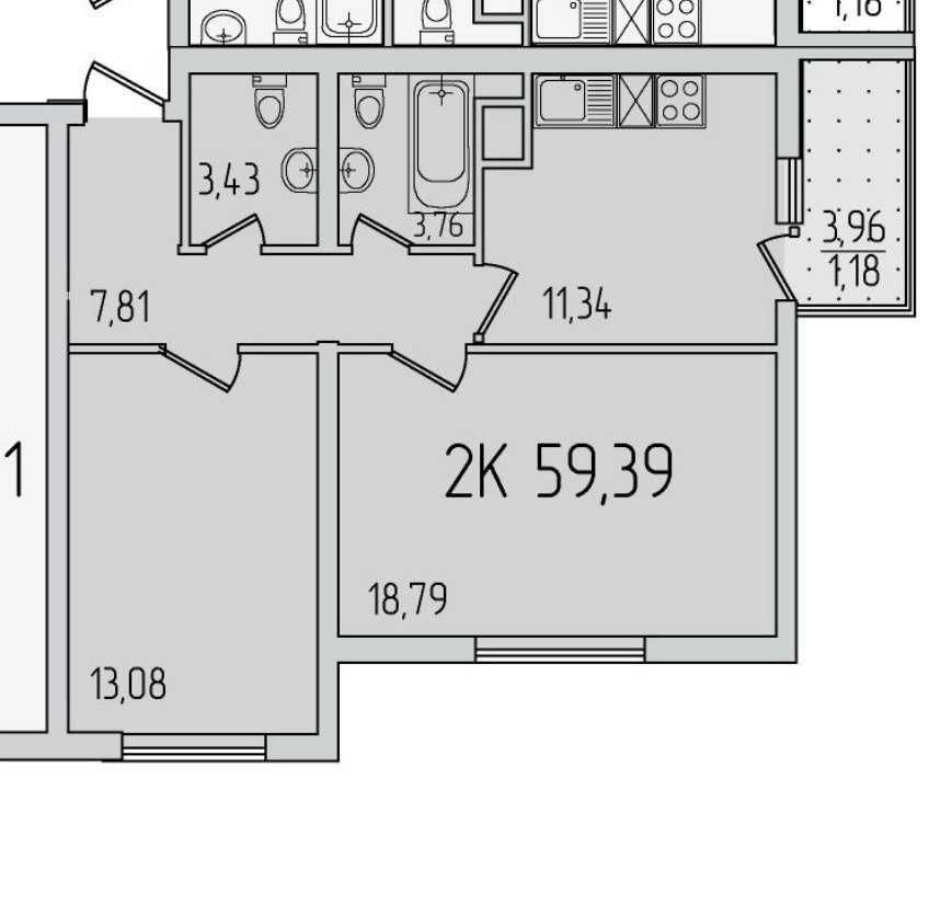 • Общая площадь 58.6 м2