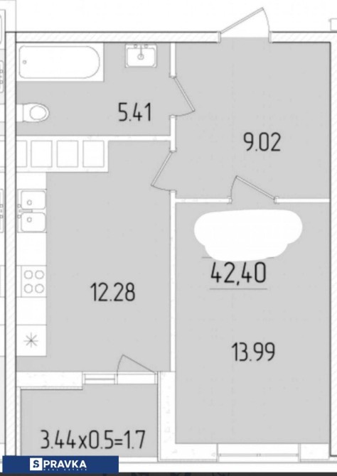 • Общая площадь 42.4 м2