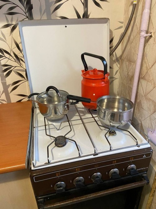 Есть двуспальный диван, Балкон, Стиральная машинка, Газовая плита, Холодильник, Кухонные столы для приготовления, тумбочки для хранения и прочее.