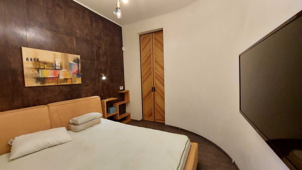 В квартире есть все для комфортного проживания: посудомоечная машина, сушильная и стиральная машина, бойлер. Отопление – водяной котел.