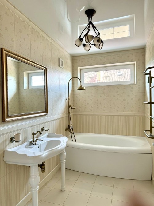 В доме имеется гостиная - столовая, кухня, 3 спальни, гардеробные комнаты, 3 санузела, кабинет, постирочная.