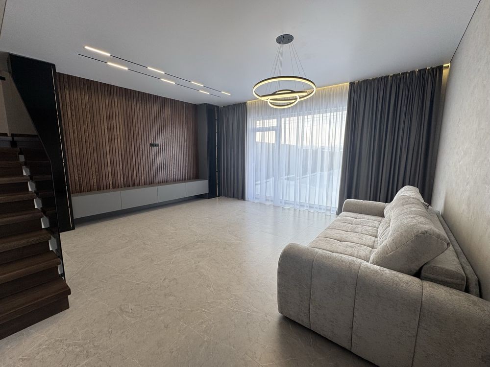 Здається сучасний дуплекс 130 м² з абсолютно новим ремонтом та меблями. Перша здача — ніхто не проживав. Має повну автономність.
