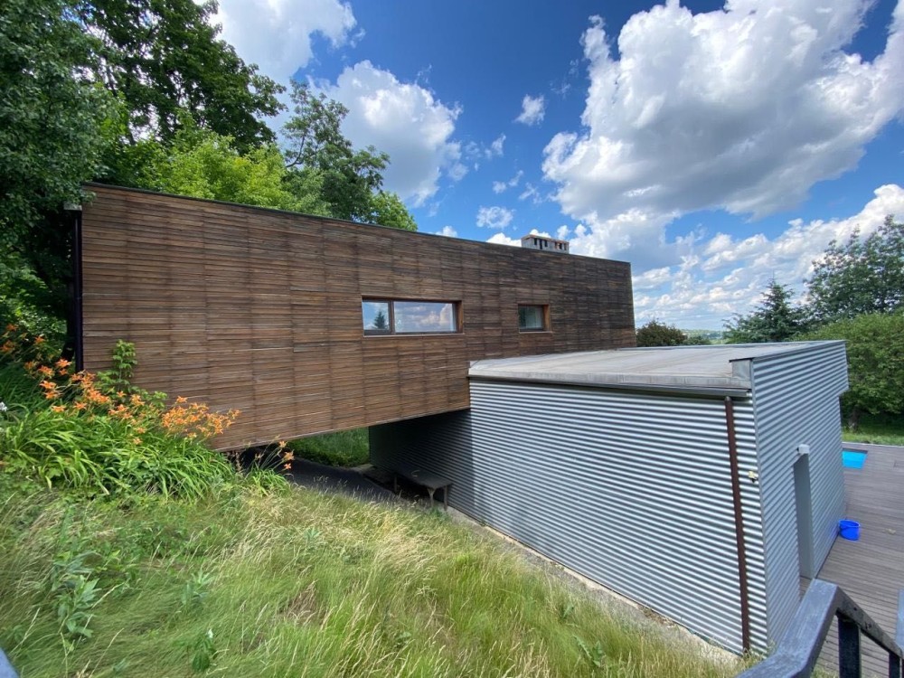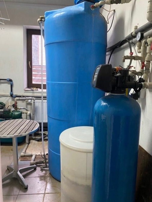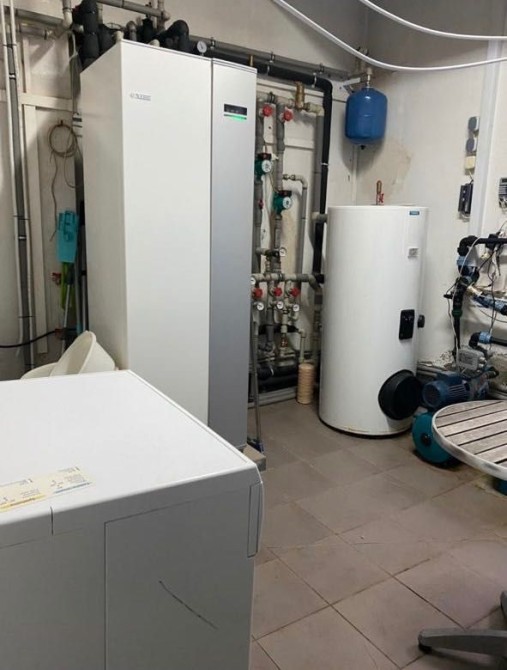В хозяйственном домике площадью 60 кв. м. комната - мастерская, санузел и техническое помещение, где установлен геотермальный насос, а также фильтры для воды ( с глубины 90 м).