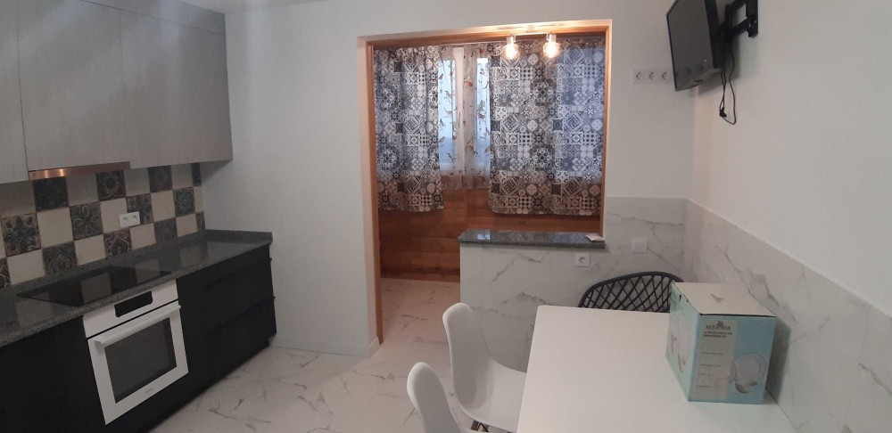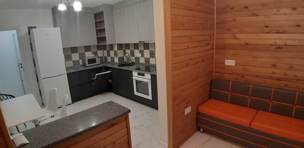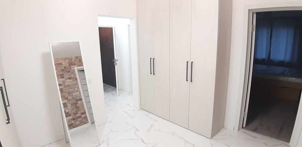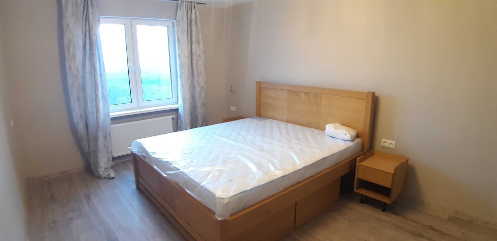 Квартира полностью меблирована всей новой мебелью, в спальне 2-х спальная кровать и прикроватные тумбочки из натурального дуба. Матрас 1.8*2.0