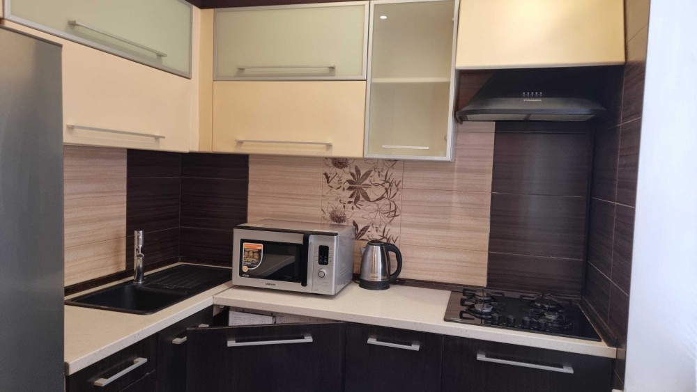 Ул. Б. Мартоса 4А, 3-к квартира в 5 минутах ходьбы до станции метро Левобережная (красная линия). Ухоженный микрорайон, развитая инфраструктура. Квартира на 2/9-эт. дома, лифт, домофон, парковка, 2 балкона, окна выходят во двор и в сад, тихо - нет шума автотранспорта. Стандартная планировка с двумя отдельными спальнями и гостиной, раздельный санузел, кухня с газовой плитой, СВЧ печью, стиральной-автомат, посудой. Установлен электро-бойлер, есть интернет (работает при отключениях света) и WI-FI роутер, 76 каналов ТВ. Квартира удобная для жизни. Цена за месяц 17000 грн. + коммунальные, моб. 063-106 23 59, 067-703 77 83, Оксана, хозяйка