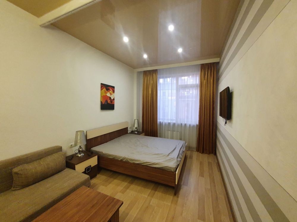 Код: 141. ПОМЕСЯЧНО АРЕНДА АКТУАЛЬНА В ПЕРИОД С 01.09 ДО 30.05 (в летний сезон сдается посуточно от 2-х суток, раннее бронирование от 5-и суток и более). Однокомнатная квартира в центре Одессы, пер. Некрасова, 4 (угол ул. Гоголя). 2/2 эт. дома - памятника архитектуры, общая площадь 70 кв. м. Евроремонт, просторная комната 60 кв. м., на первом уровне - кухня санузел и холл, на втором - спальня. Высота потолков - 6,20 м. Есть все необходимое для проживания, квартира оснащена абсолютно всем. Под окнами находится охраняемая парковка, ресторан и магазин. Хорошее расположение, рядом кафе «Гоголь-Моголь», памятники архитектуры и достопримечательности. Аренда от 3-х месяцев и более. Стоимость может варьироваться в зависимости от срока аренды. Перед просмотром уточните наличие и детали по VIBER, WHATSAPP или TELEGRAM, указав «КОД» из объявления. КОМИССИЯ ЗА УСЛУГИ РИЭЛТОРА - 50% от месячной аренды (разовая оплата при оформлении договора).
