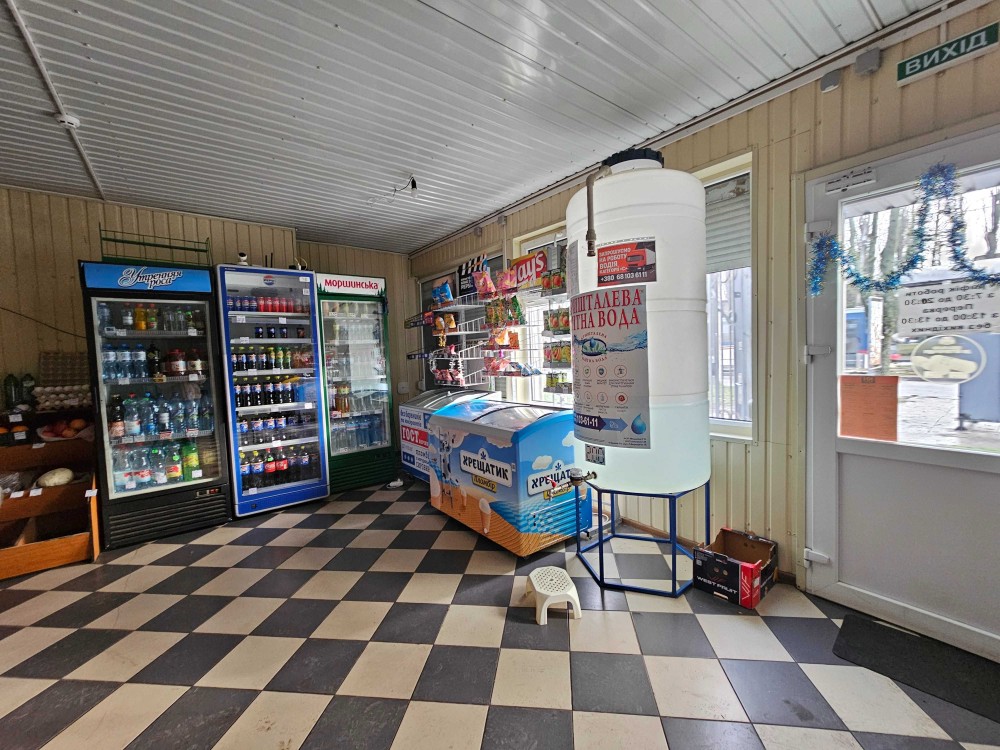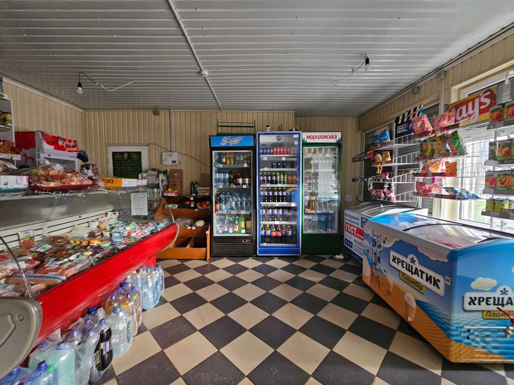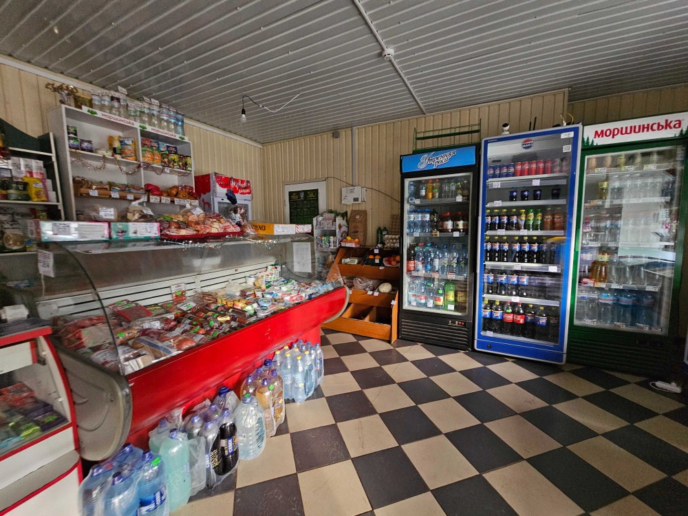 Входы и фасад: один основной вход для клиентов и два отдельных для завоза товаров. Фасад — четыре витражных окна, отличная обзорность и визуальная доступность с дороги.