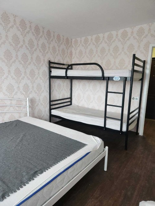Сдаю 2-х ком.кв. на ж/м Победа-6, тупик маршруток. Этаж 14/16 эт.дома, работают 2 лифта, не угловая. Квартира после косметического ремонта, мп/окна, 2 лоджии не застеклены. Из мебели есть спальные места для взрослых (двуспальная кровать) и детей (двухъярусная кровать), а так же кухонная мебель; техника: 2-х камерный холодильник, стиральная машина-автомат, бойлер для горячей воды, эл/печь.