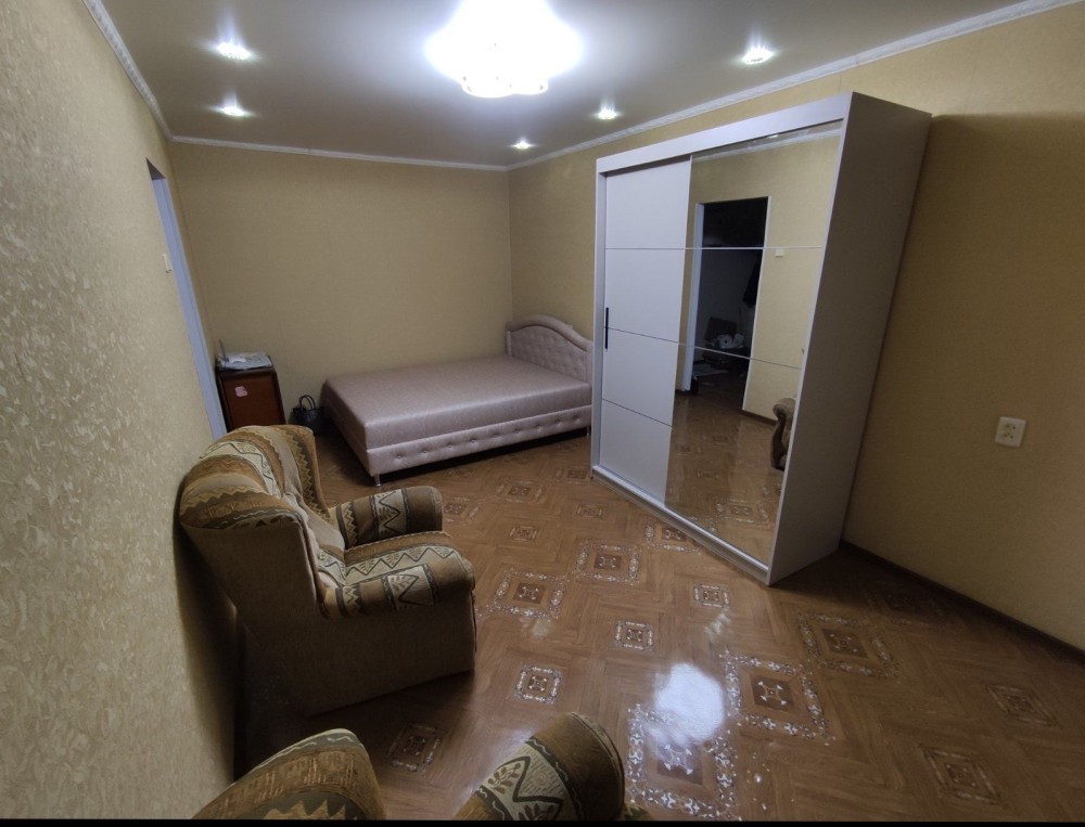 3кімнатна квартира, перебудована у 2кімнатну. Кухня-студія має телевізор, кондіціонер, диван, софу, посудомийну машину, пральну машину, витяжку, духову піч та вихід на балкон. Вікна кухні виходять у двір. Вікна спальні на проспект Миру. В спальні також є кондіціонер та телевізор. Ванна велика, має вуглову ванну та бойлер. Підійде для сімї з 3 людей. Поряд знаходиться бібліотека, магазин, море, кафе, банк та парк. Здається з проживанням і влітку також, без виселення. Деталі за телефоном.