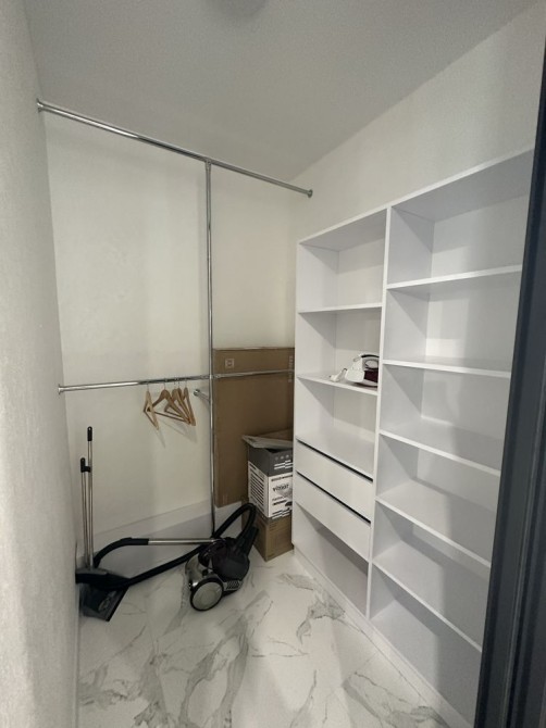Отдельно спальня,кухня-гостиная с диваном,гардеробная.