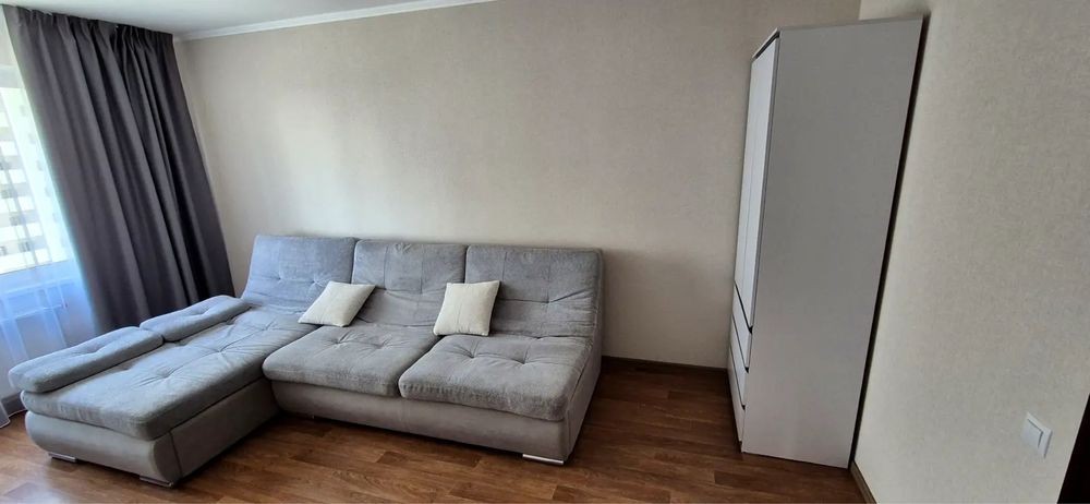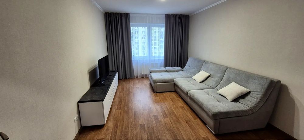 Простора 1-кімнатна квартира у ЖК "Патріотика" в Дарницькому районі. На 11 поверсі 25-поверхового будинку, площею 43 м.кв., за адресою вулиця. Софії Русової 7а. Новобудова, сучасний новий ремонт, перша сдача в оренду, ніхто не мешкав! Вся необхідна техніка і меблі. Є лічильники на воду та тепло. Будинок з генератором! Поряд з будинком вся необхідна інфраструктура - дитячий та спортивный майданчик, супермаркети, кафе, ресторани, 2 озера і пляж, громадський транспорт. До метро Позняки та Осокорки 15 хв пішки