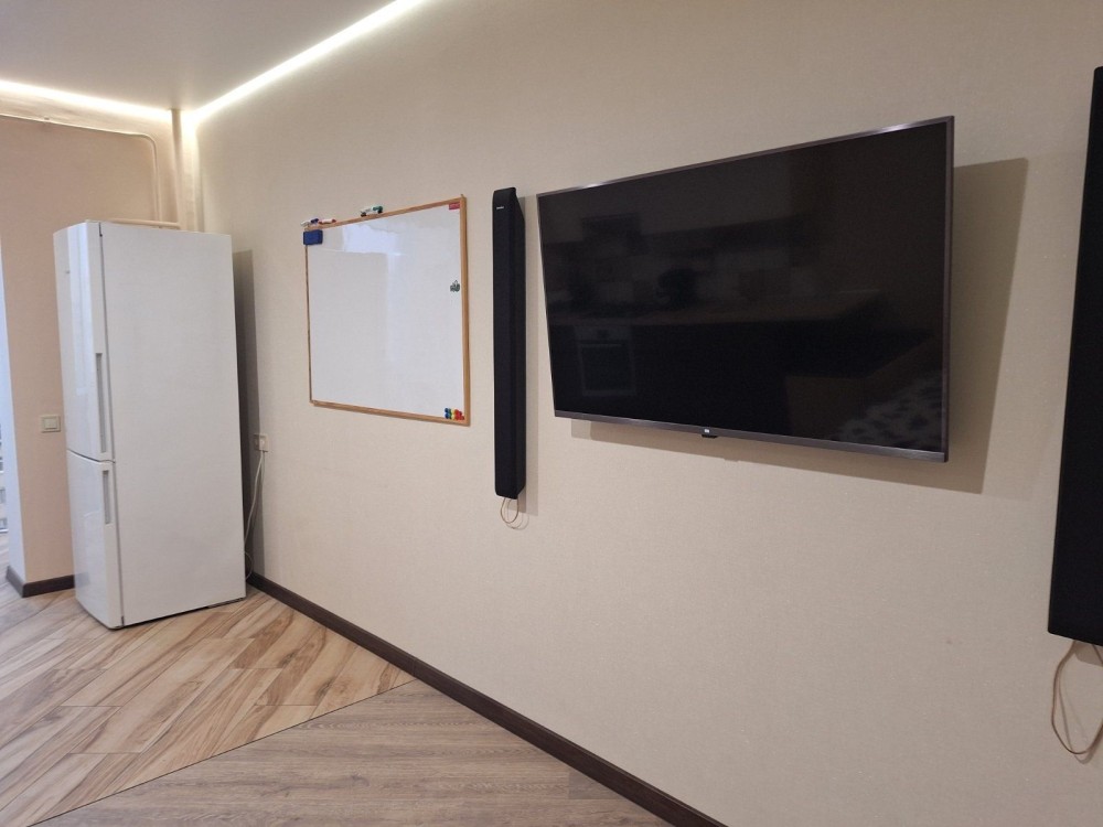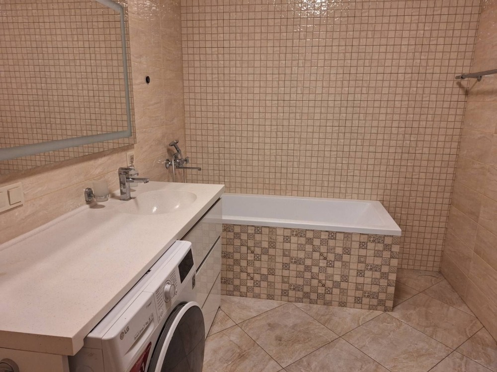 Имеется вся необходимая посуда, мультиварка, кофе-машина, пылесос, увлажнитель воздуха, стиральная машинка с сушкой, телевизор, холодильник.