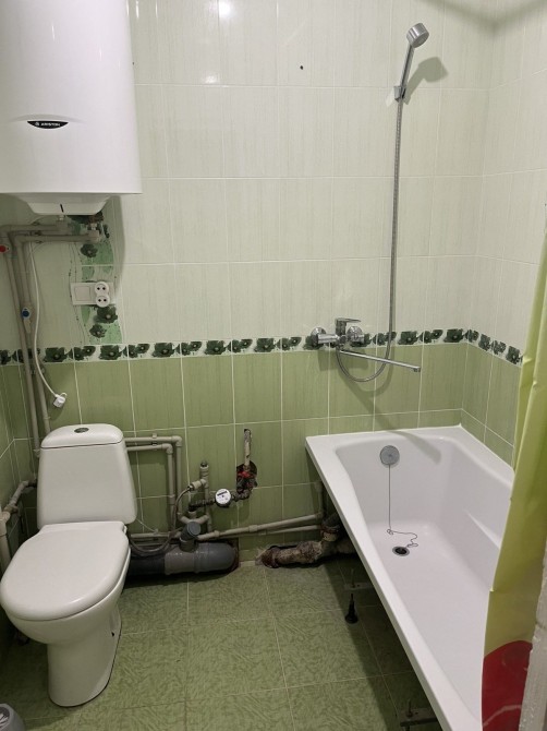 - санвузол суміжний, ванна кімната душова кабіна, керамічна раковина, над туалетом встановлений бойлер.