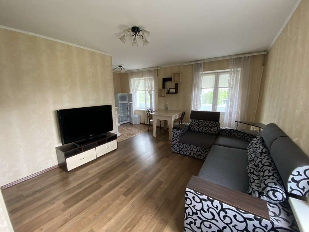 3кімнатна квартира, перебудована у 2кімнатну. Кухня-студія має телевізор, кондіціонер, диван, софу, посудомийну машину, пральну машину, витяжку, духову піч та вихід на балкон. Вікна кухні виходять у двір. Вікна спальні на проспект Миру. В спальні також є кондіціонер та телевізор. Ванна велика, має вуглову ванну та бойлер. Підійде для сімї з 3 людей. Поряд знаходиться бібліотека, магазин, море, кафе, банк та парк. Здається з проживанням і влітку також, без виселення. Деталі за телефоном.