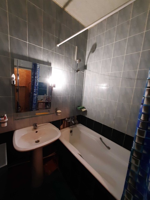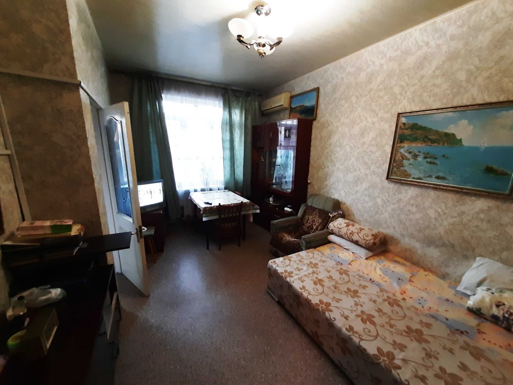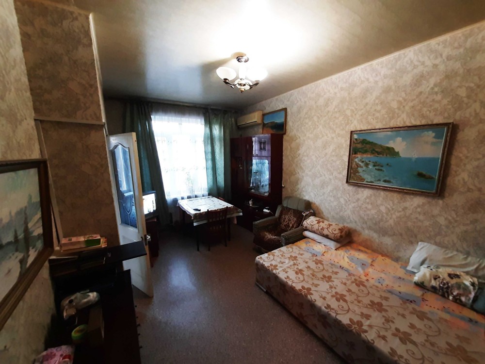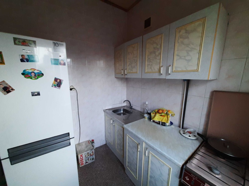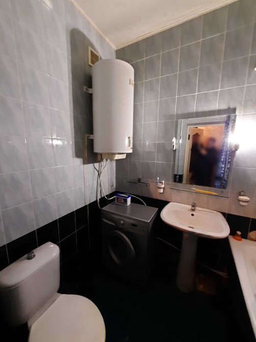 По квартире 2 этаж - 2 этажного дома, без балкона. Окна МПО. С/У совмещен в современном кафеле. Есть стиральная машина, холодильник, водонагреватель, кондиционер, газовая плита. Отопление электрическая батарея( на фото его нет, только в этом сезоне куплен ), счетчик электричества день/ночь. В комнате шкаф, спальное место, столик. Кухня меблированная всем необходимым.