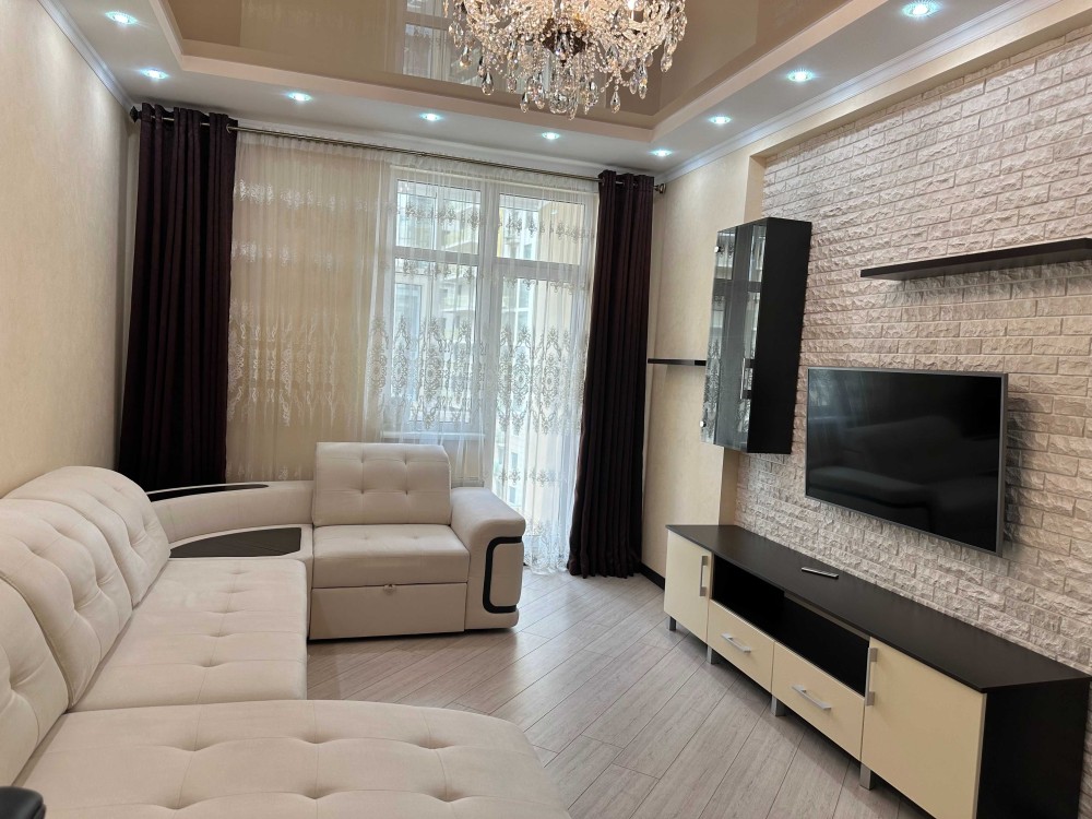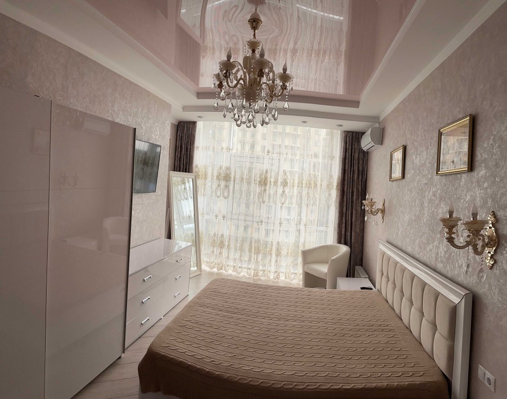 Сдам двух комнатную квартиру в обжитом новострое 9 этаж, полноценные комнаты, балкон,просторная кухня, сан.узел совмещен, ванная, квартира полностью укомплектована мебелью и техникой, кондиционеры, посудомоечная машинка, стиральная машинка, кофе машина, холодильник, морозильная камера, три телевизора, двух спальняя кровать , ортопедический большой диван, встроенные шкафы.Квартира очень светлая, теплая, после клининга.В доме генератор,охрана,видеонаблюдение,во дворе большой магазин Сильпо, детские площадки, кафе, спортзал. Квартира свободна,готова к вселению.