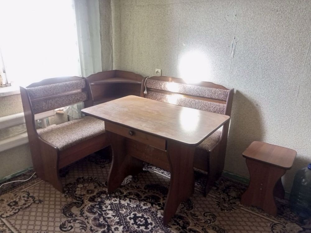 Балкон застеклен, 2 комнаты пластиковые окна. На кухне часть окна закрыта ДСП.