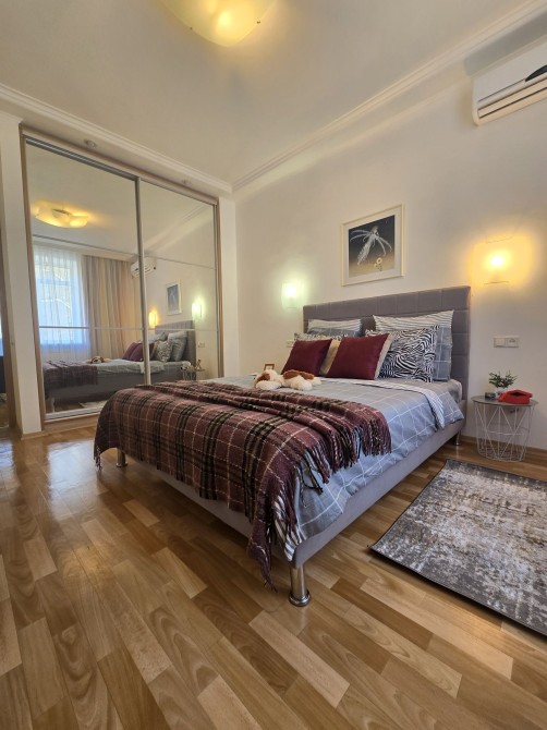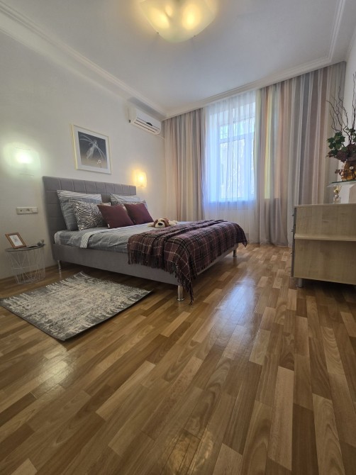 Код: 172. ПОМЕСЯЧНО АРЕНДА АКТУАЛЬНА В ПЕРИОД С 01.09 ДО 30.05 (в летний сезон сдается посуточно от 2-х суток, раннее бронирование от 5-и суток и более). Пятикомнатная квартира в центре Одессы, ул. Дерибасовская/угол Греческой площади, 2/3 - эт. дома - памятника архитектуры, общая площадь 100 кв. м. Авторский ремонт, сочетание классики и современного стиля, качественные материалы, высокие потолки (5 м.), большой зал в двух уровнях с LCD телевизором, четыре спальни с большими двуспальными кроватями, дорогая итальянская мебель, кожаная мягкая мебель, огромная круглая кровать в центре главной спальни, создают атмосферу абсолютного комфорта. Санузел с джакузи на 2 места. Квартира оборудована: 3 кондиционера, плазменный TV + 2 LCD TV в спальнях, WI-FI интернет, большая джакузи, DVD, стиральная машина, CD-магнитола, спутниковое ТВ, микроволновая печь, фен, кофеварка, тостер, телефон. Прекрасный вид из окон на Греческую площадь. Удачное расположение дома, самое сердце Одессы, множество достопримечательностей, потрясающая архитектура, множество кафе и ресторанов под открытым небом. Напротив дома (в самом центре Греческой площади) расположен большой торговый центр «Афина» (с платным подземным паркингом). Вход в дом - железные ворота с домофоном. Допускается проживание с животными. Аренда от 1-го месяца и более. Стоимость может варьироваться в зависимости от срока аренды. Перед просмотром уточните наличие и детали по VIBER, WHATSAPP или TELEGRAM, указав «КОД» из объявления. КОМИССИЯ ЗА УСЛУГИ РИЭЛТОРА - 50% от месячной аренды (разовая оплата при оформлении договора).