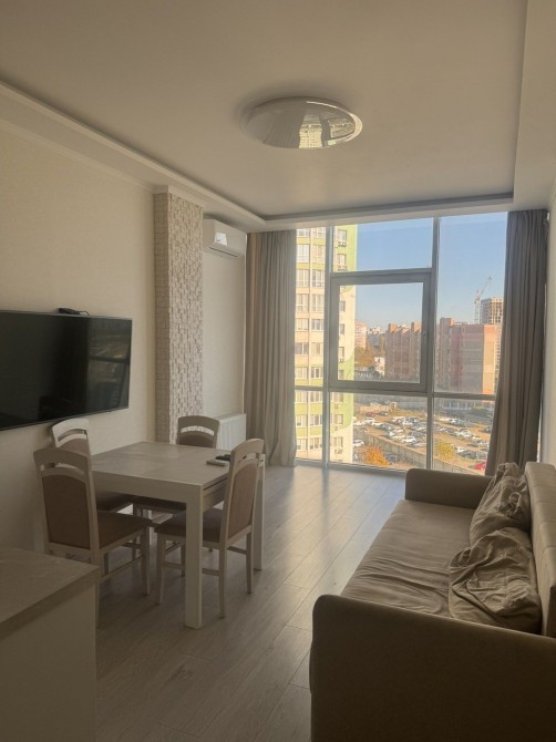 Оренда стильної 1 к кв з кухнею студією в новому будинку ЖК "Файна Таун" в Шевченківському районі, вул. Салютна, 2 Квартира 43 м2 , розташована на четвертому поверсі та складається з передпокою, спальні, великої кухні -студії та санвузла. Вікна квартири виходять в двір. Облаштована всіма необхідними меблями з екологічно чистої деревини та оснащена побутовою технікою: телевізор Samsung Smart 43, кондиціонери в кухні та кімнаті, плита індукційна, вбудований холодильник, духова шафа з функцією мікрохвильової печі, пральна машина з сушаркою. В кухні та ванній кімнаті тепла підлога, високошвидкісний інтернет. ЖК "Файна Таун" це: закрита територія з входом по картці, цілодобова охорона, відеоспостереження, паркінг, підземні контейнери для сміття, зарядні станції для електромобілів та лавки з інтегрованими батареями для підзарядки девайсів, розумне освітлення, яке підлаштовується під час доби та ще багато чого для того, щоб жити з комфортом й ні в чому себе не обмежувати) розповім при перегляді. Зручне транспортне сполучення та розвинута інфраструктура: магазини,спортивні та пішохідні зони ,зона барбекю, ресторани та кафе. Квартира, в якій поєднані комфорт та затишок, шукає своїх порядних орендарів молоду пару або одну людину без дітей та тварин. Перша оренда, квартира вільна.