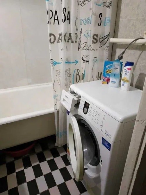 Чистое жилое состояние, двуспальная кровать, диван, холодильник, стиральная машина, телевизор.