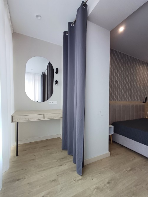 Уютная светлая квартира с качественным ремонтом, мебелью и техникой, спланирована в просторную кухню-студию и отдельную спальню, совмещенный санузел, есть гардеробная комната и масса шкафов для хранения.
