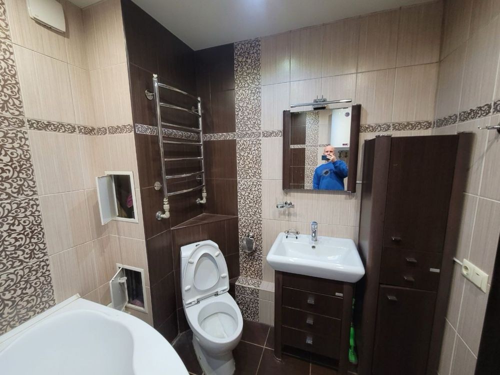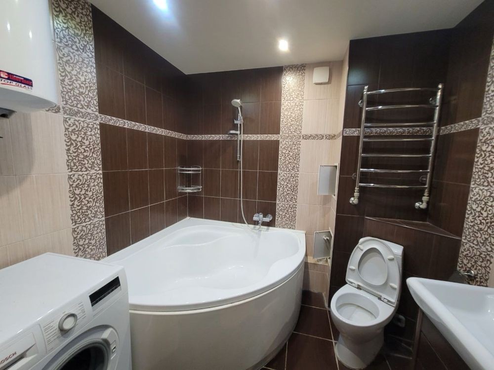 В квартире хороший, капитальный ремонт, мебель, техника, кондиционер, новая стиральная машина Bosch, холодильник Либхен, робот пылесос, шкаф купе в коридоре, большая угловая ванная 1,5*1,5 метра