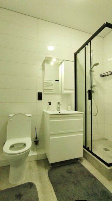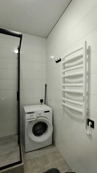 В сан узел, душ кабина, стиральная машина автомат, бойлер.
