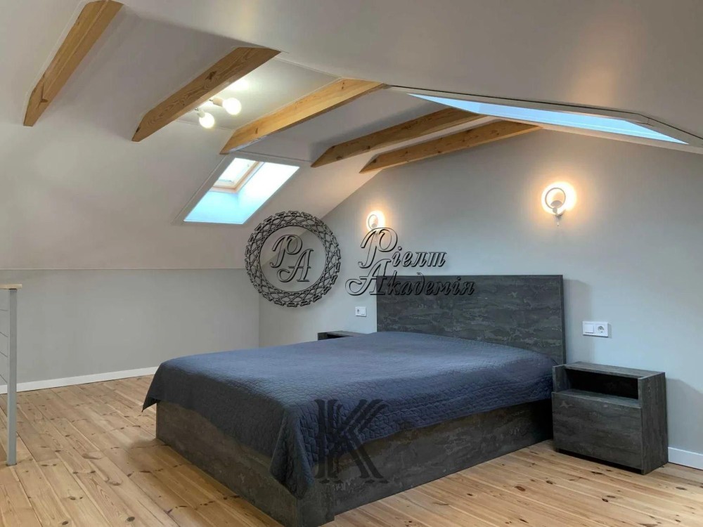 Загальна площа будинку 120 кв.м, площа ділянки 6 соток. Територія огороджена парканом, є 2 парковки для авто. В будинку 3 спальні, 2 санвузли з душем. Будинок облаштований новими меблями, новою побутовою технікою, підігрівом підлоги, сучасним дровяним каміном. Також є гостьовий будинок з сауною, купіллю, душем, додатковим санвузлом, кухнею та додатковим спальним місцем. За оренду будинку додатково потрібно сплатити суму еквівалентну до 150$. Вже встановлені сонячні панелі (5КВ), інвертор (5КВ) та батерея (10КВ). Обслуговування будинку в зимку десь 3000грн. В літку 1500 грн.є дрова для каміна. До Києва 20 хвилин на авто. Розглянемо з тваринами. Вартість оренди - 1200 $/міс.