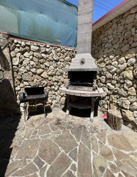 Во дворе есть мангал и батут для детей