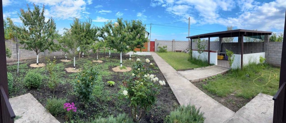 Большой двор, где есть место для авто и для пикника. Территория облагорожена и приятна для прогулок. есть беседка мангал.