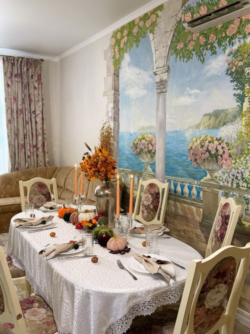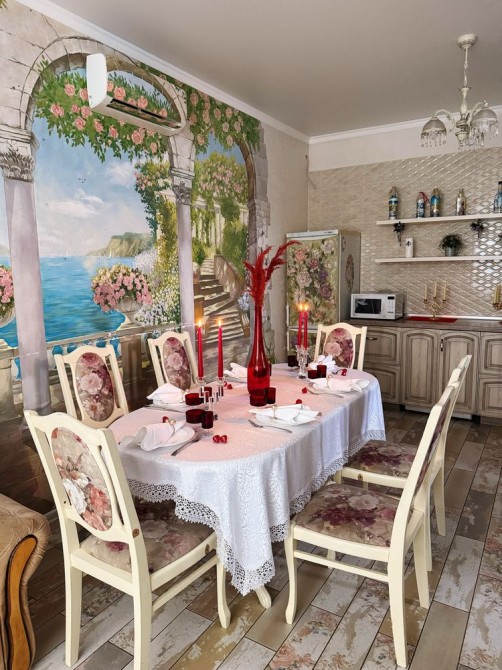 65 В Шикарний будинок з великою СПА-зоною 5 окремих спалень Для компанії до 15 гостей, спальних місць до 12 Велика тераса, барбекю, шикарний ландшафтний дизайн, велика джакузі, хаммам . Ціна до 10 гостей понеділок-четвер -45.000 грн П'ятниця , неділя -50.000 Субота 60.000 грн Кожен наступний гость 3000 грн але не більше 17 гостей