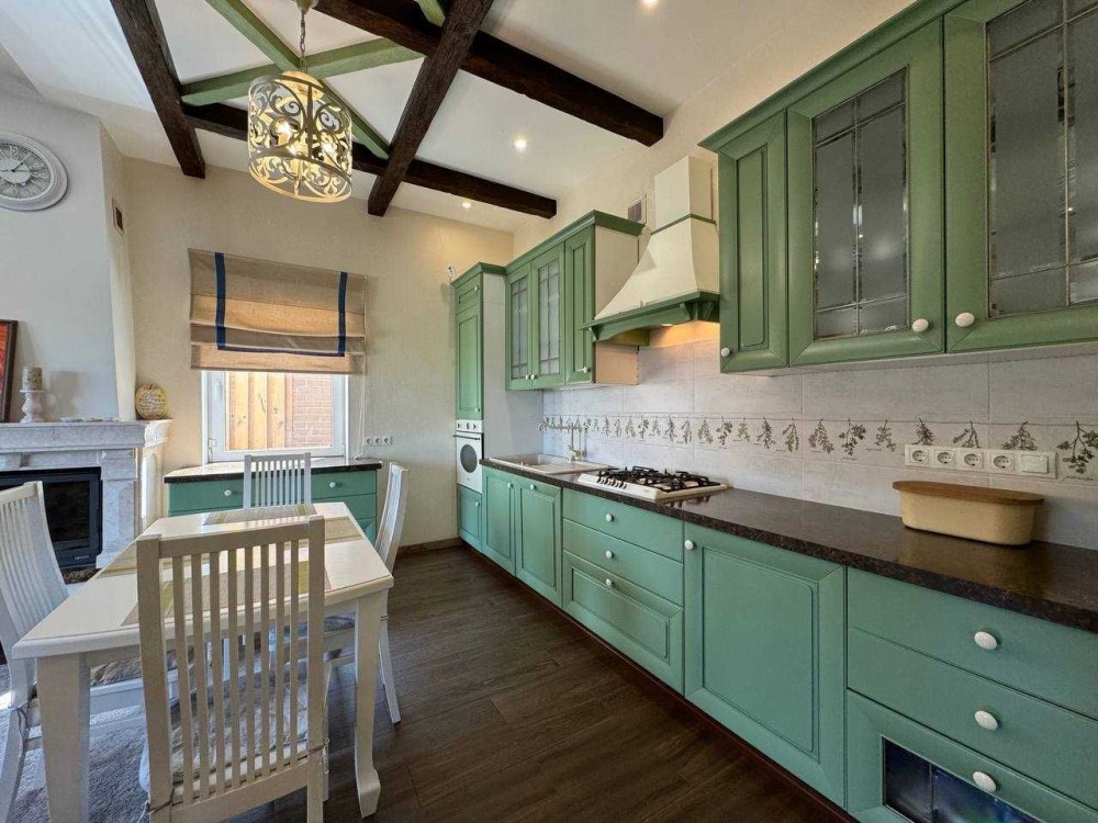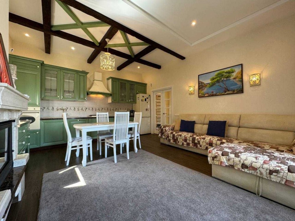– Просторная кухня-гостиная с камином
