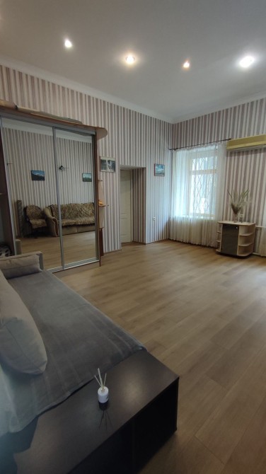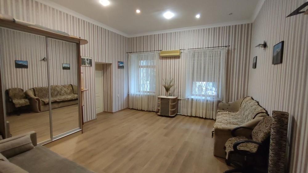 Код: 172. ПОМЕСЯЧНО АРЕНДА АКТУАЛЬНА В ПЕРИОД С 01.09 ДО 30.05 (в летний сезон сдается посуточно от 2-х суток, раннее бронирование от 5-и суток и более). Пятикомнатная квартира в центре Одессы, ул. Дерибасовская/угол Греческой площади, 2/3 - эт. дома - памятника архитектуры, общая площадь 100 кв. м. Авторский ремонт, сочетание классики и современного стиля, качественные материалы, высокие потолки (5 м.), большой зал в двух уровнях с LCD телевизором, четыре спальни с большими двуспальными кроватями, дорогая итальянская мебель, кожаная мягкая мебель, огромная круглая кровать в центре главной спальни, создают атмосферу абсолютного комфорта. Санузел с джакузи на 2 места. Квартира оборудована: 3 кондиционера, плазменный TV + 2 LCD TV в спальнях, WI-FI интернет, большая джакузи, DVD, стиральная машина, CD-магнитола, спутниковое ТВ, микроволновая печь, фен, кофеварка, тостер, телефон. Прекрасный вид из окон на Греческую площадь. Удачное расположение дома, самое сердце Одессы, множество достопримечательностей, потрясающая архитектура, множество кафе и ресторанов под открытым небом. Напротив дома (в самом центре Греческой площади) расположен большой торговый центр «Афина» (с платным подземным паркингом). Вход в дом - железные ворота с домофоном. Допускается проживание с животными. Аренда от 1-го месяца и более. Стоимость может варьироваться в зависимости от срока аренды. Перед просмотром уточните наличие и детали по VIBER, WHATSAPP или TELEGRAM, указав «КОД» из объявления. КОМИССИЯ ЗА УСЛУГИ РИЭЛТОРА - 50% от месячной аренды (разовая оплата при оформлении договора).